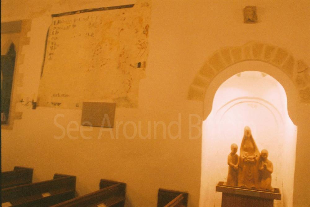 "Simple church, consisting of a nave and chancel and Victorian vestry. Originally a chapel dependent on Blewbury. Late 11th or early 12th nave, extended in late middle ages. 19th century chancel. Glorious 19th century wooden fleche spire. Mediaeval wall painting of St Christopher. A Grade 2 star listed building with a fine 20th century glass window of St Birinus.."