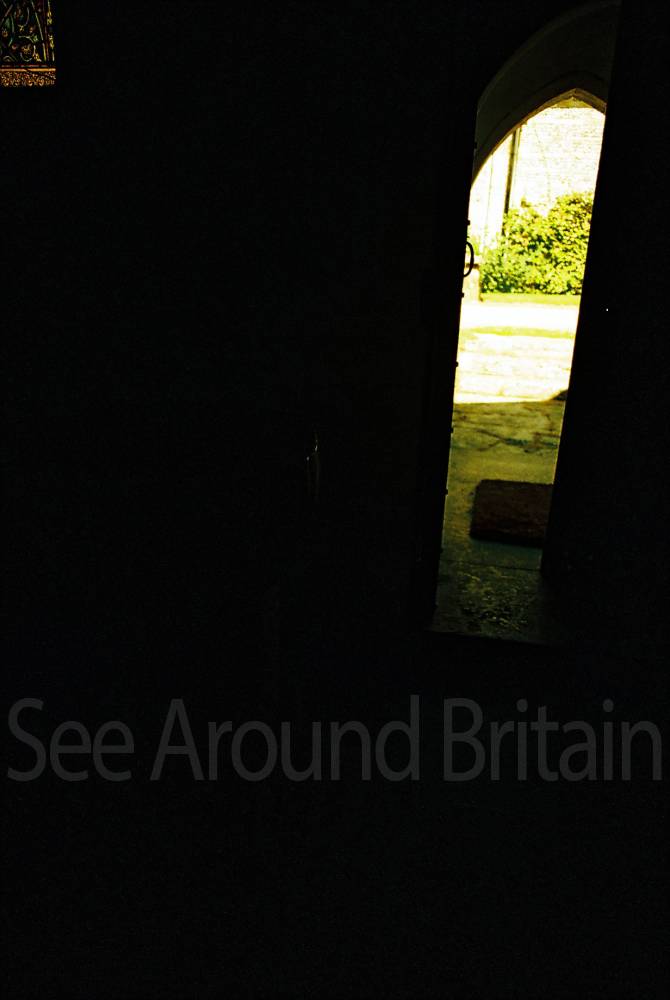 "Best parking is on the verge of the tarmac lane in the village It is then a 120metre walk down a track as signposted. Entrance is then trough a gate, down a sloping grass churchyard to 3 crumbling steps leading to the north porch".