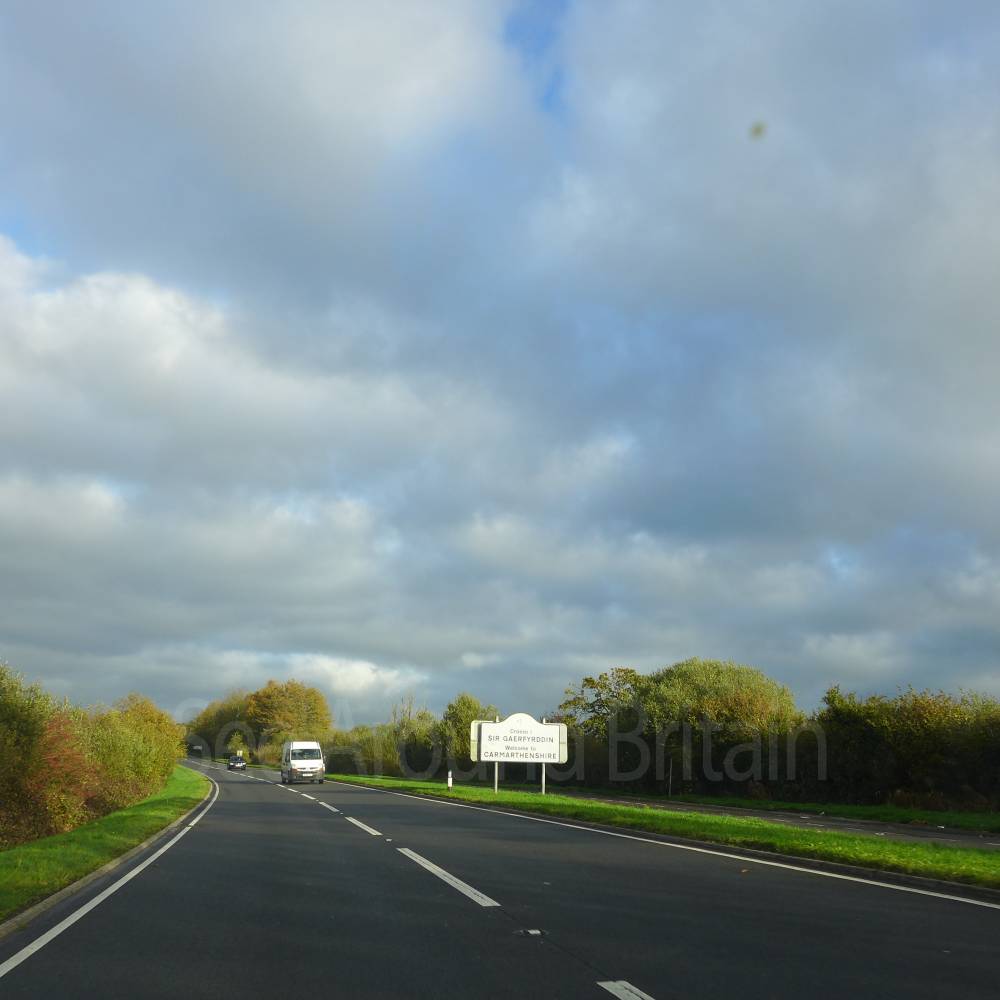 Carmarthenshire border sign, A40, Whitland, Carmarthenshire