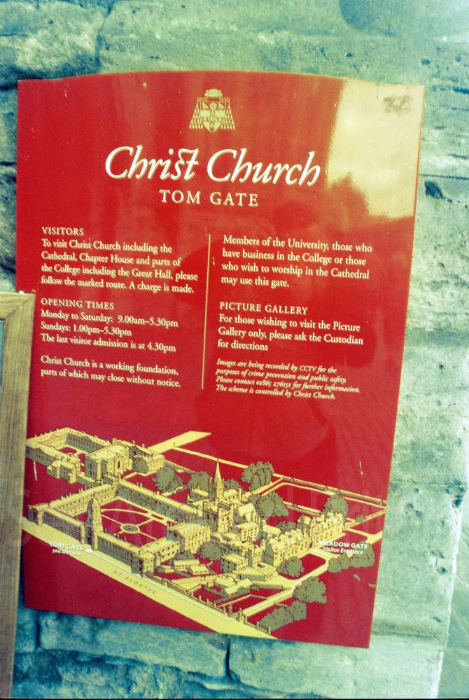Christ Church has 2 entrances (please see Directions below); Meadow Gate, the main visitor entrance, and Tom Gate, the entrance for disabled visitors. Tom Gate, beneath Tom Tower on St Aldate's, is wheelchair-accessible, as is the Porters' Lodge enquiry desk, which has an induction loop. Not all other parts of the site are fully accessible, so advice from the enquiry desk is recommended.