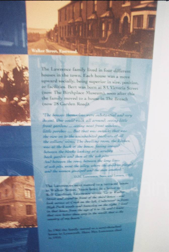 "Durban House in Eastwood, Nottinghamshire, once housed the D.H. Lawrence Heritage Centre, featuring exhibitions on the author's life and local mining history, but was permanently closed by Broxtowe Borough Council in 2016 to save costs, merging its displays with the nearby D.H. Lawrence Birthplace Museum. The building, significant as the place Lawrence collected his father's wages, later briefly became a spa before falling empty, remaining a key literary landmark in Eastwood's history, now focused on the Birthplace Museum. "