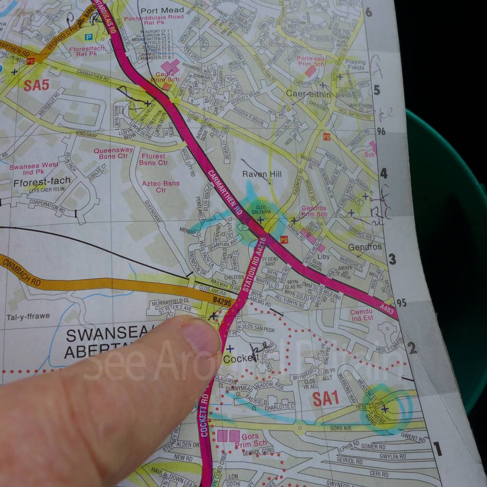 Just after the brow of the hill fork left onto Gors Avenue at the traffic light controlled junction.