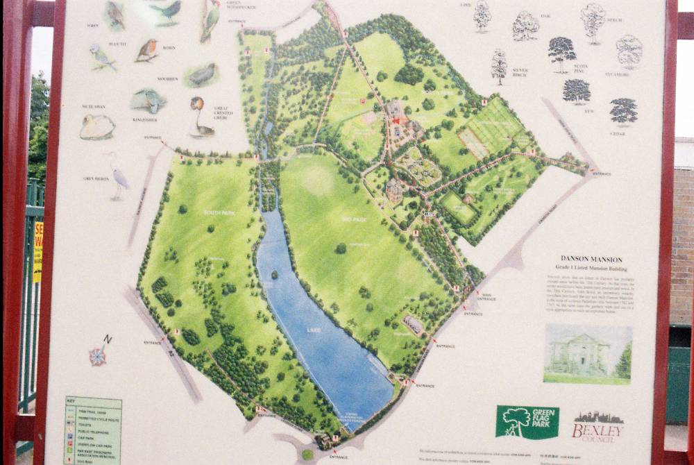 The park includes Danson House, the Old English Garden, Rock Garden and Peace Garden, fishing/boating lake, bowls, sports facilities, picnic area, children's' playground, cafes and restaurants.