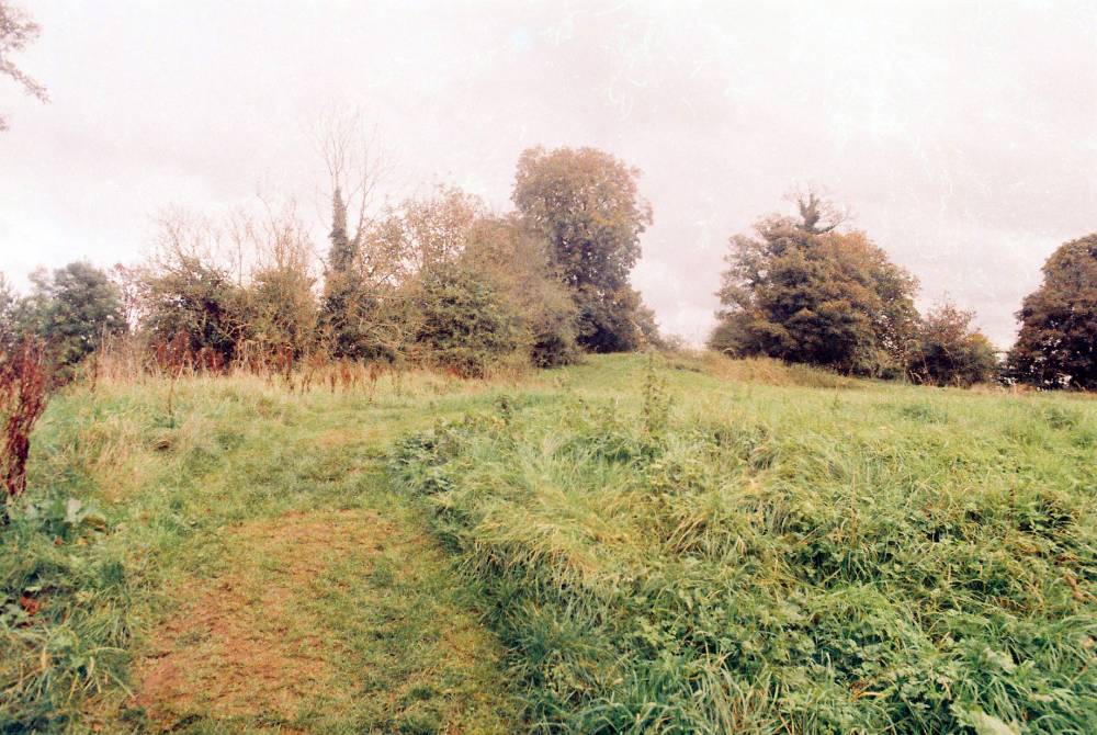 "The earth banks are what remains of the castle. There is some uneven and sloping ground