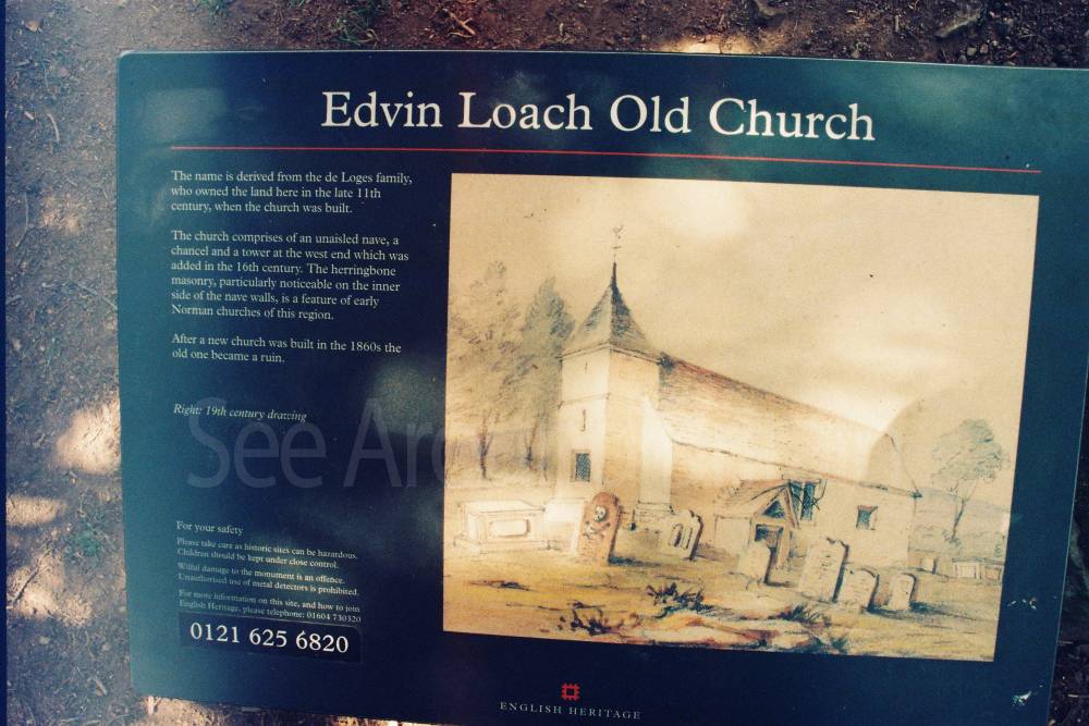 Edvin Loach Old Church is the ruins of an old parish church, situated within the entrenchment of a Norman period castle. It is adjacent to the Edvin Loach New Church - otherwise known as the Edvin Loach St Mary's Church. St Mary's is a Victorian era Grade II listed building, open for Sunday service and evening prayers on the third Sunday of every month.