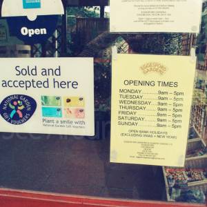 Please note that only the Gardens Restaurant is open on Easter Sunday. We are not allowed to open the garden centre and shop due to Sunday Trading law."