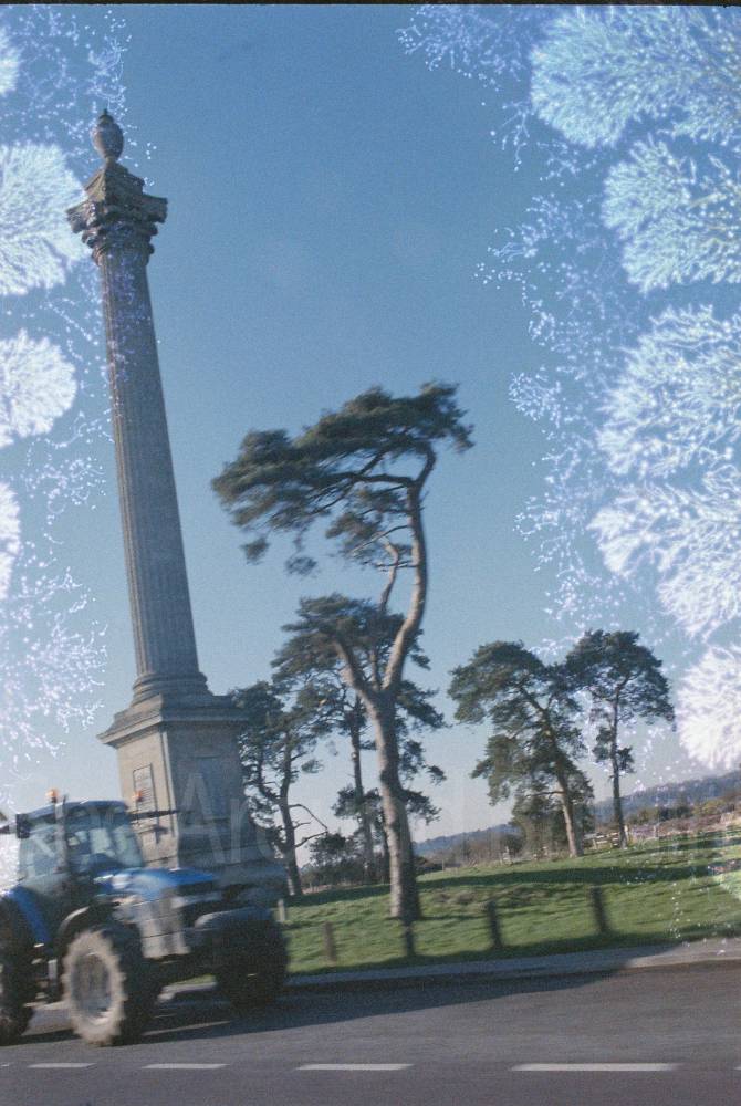 The memorial stands on the north side of the A11 trunk road, Weather Heath, Suffolk, at the point where the parishes of Elveden, Icklingham, and Eriswell meet.