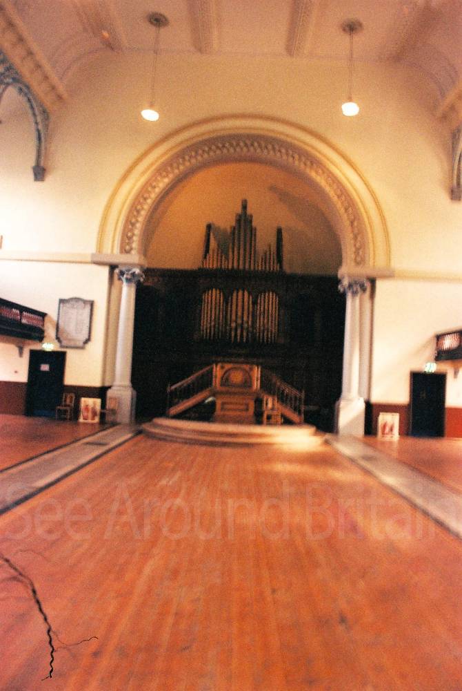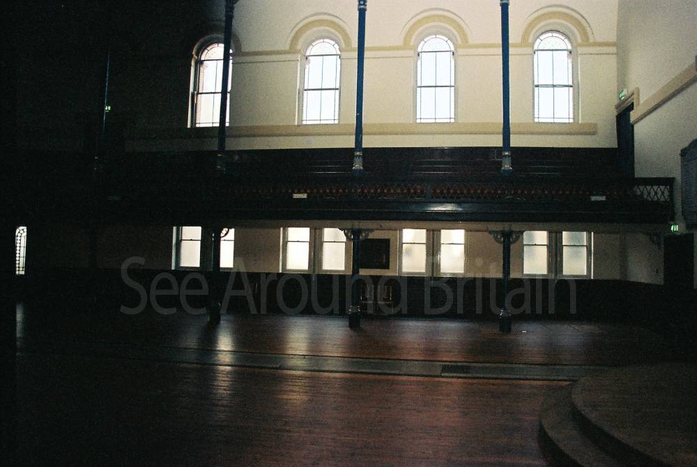 "Grade II* listed Nonconformist chapel for 1,000 people. Described by Pevsner as 'one of the finest Nonconformist buildings in London'. Horseshoe plan, innovative cast-iron columns and tracery, restored as a centre for the performing arts."