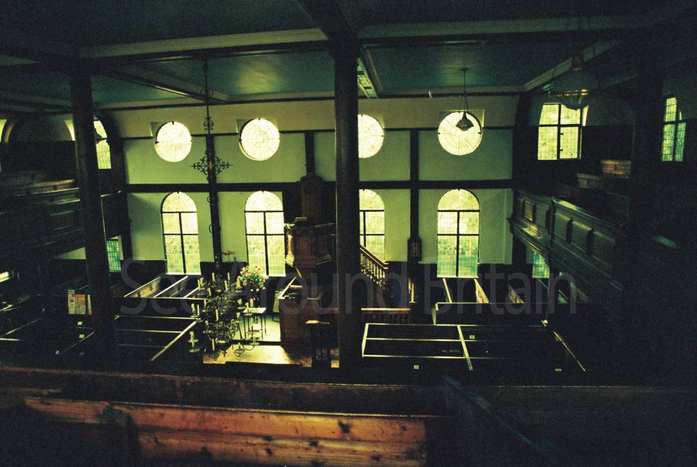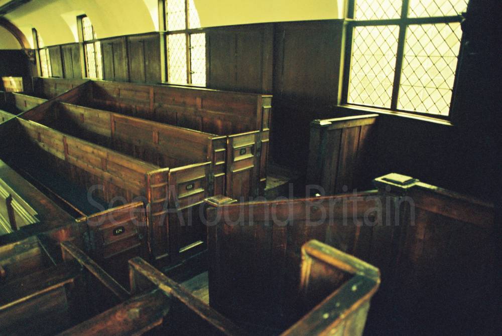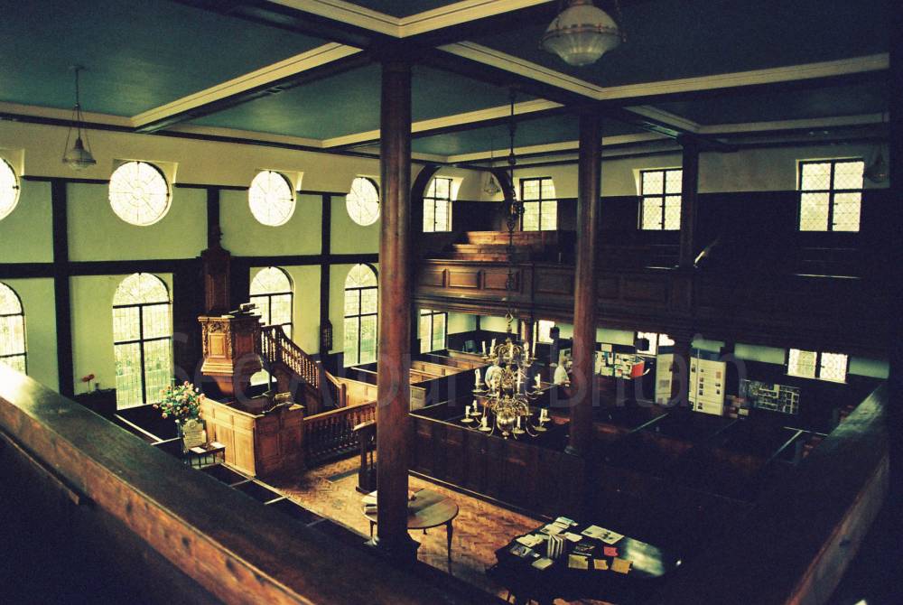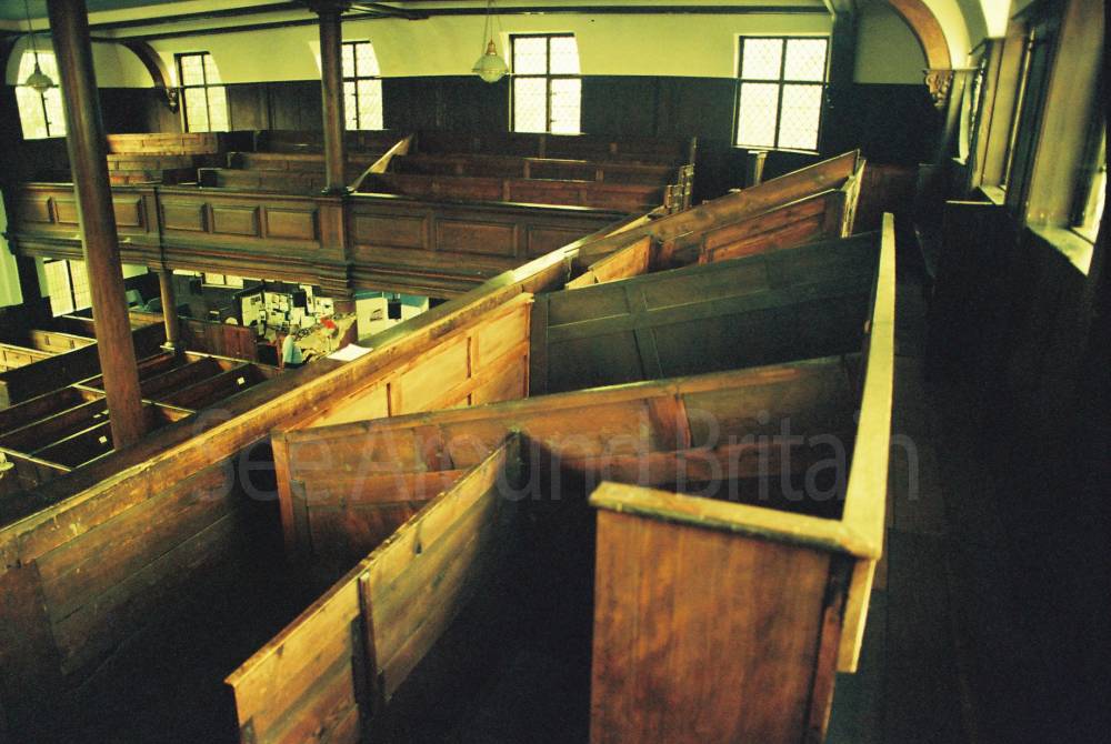The internal layout is little changed since its construction and boasts many original features: a richly carved pulpit reputed to be from the workshop of Grinling Gibbons (maybe even the work of the master woodcarver himself); a three tiered brass chandelier of Dutch origin; box pews; wooden pegs on which gentlemen could hang their wigs (these still being fashionable when the Meeting House was built); a wooden gallery and a spy hole in one of the entrance doors to watch for those intent, in a time of religious persecution, on destroying Dissenters’ places of worship. The lofty roof is supported by four wooden columns, traditionally said to be ships’ masts, not unlikely in view of Ipswich’s maritime connections!