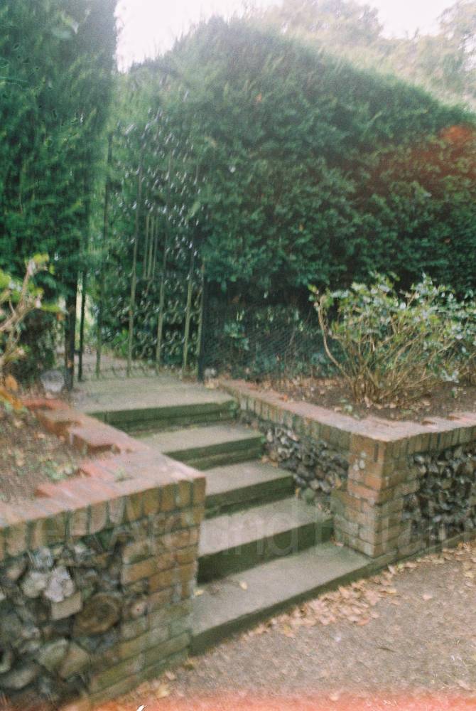 Grounds: uneven and loose gravel paths, slopes, some steps, grass and undulating terrain.