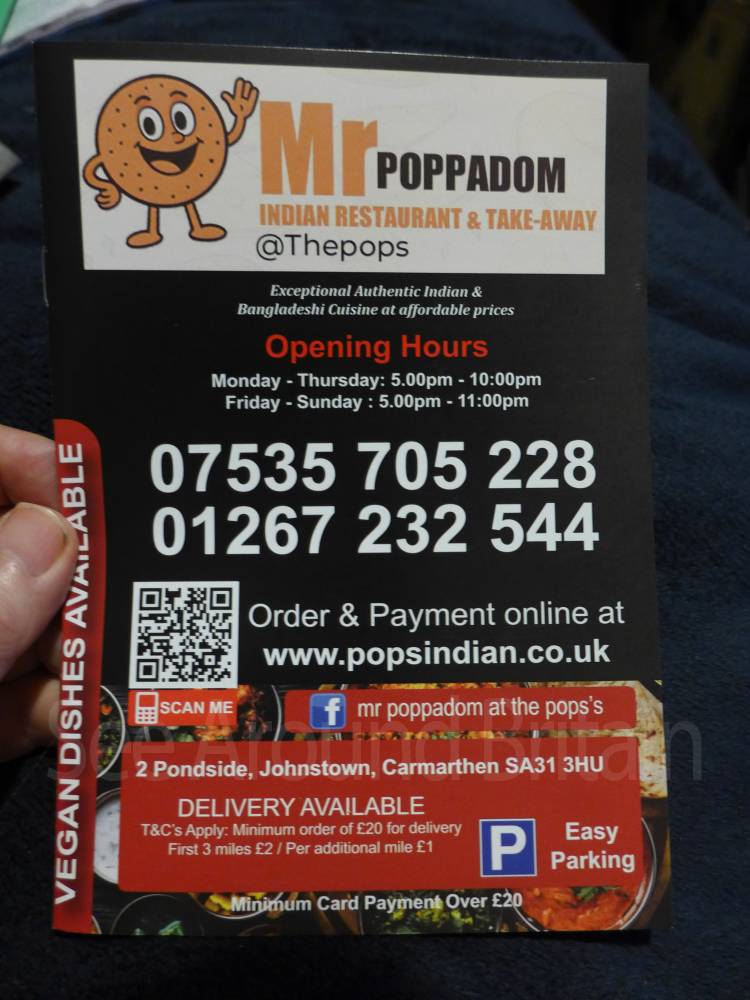 Pops Indian Restaurant and Takeaway, Johnstown, Carmarthenshire