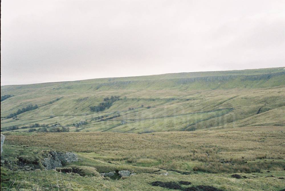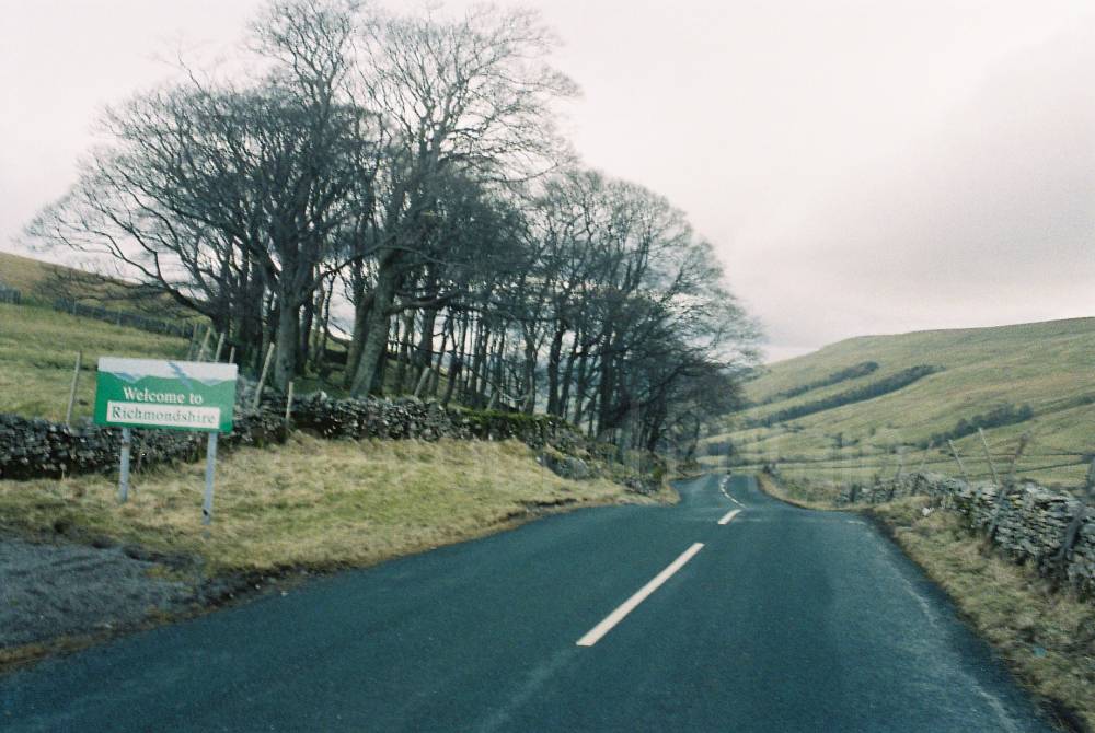 Richmondshire sign on B6255 and landscape surrounding, Newby Head, Hawes, Yorkshire Dales, DL8 3LX