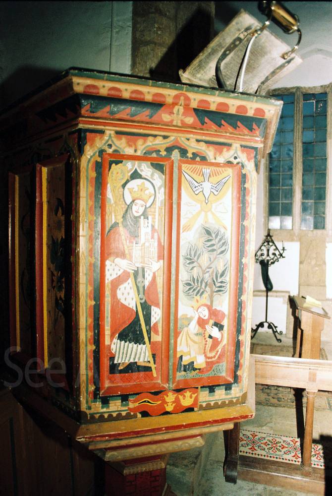 An historical church and Grade I listed building with many outstanding decorative features, including a large medieval wall painting.