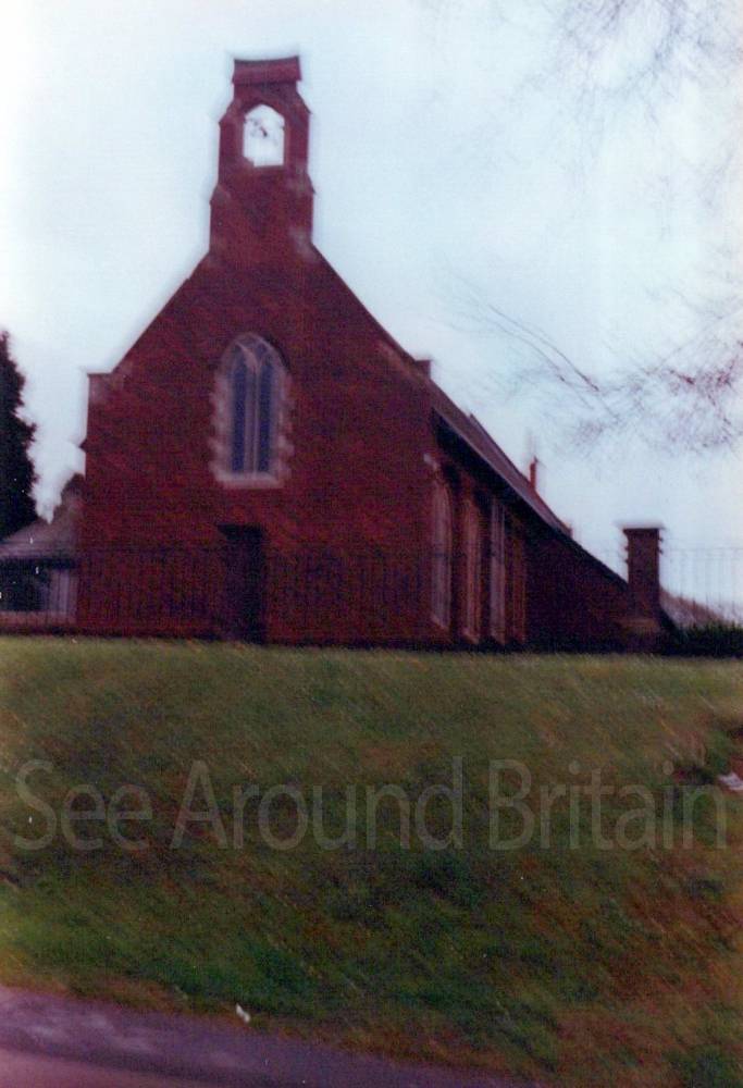 At the mini roundabout just after the row of shops take the left turn and the church immediately appears on the left hand side.