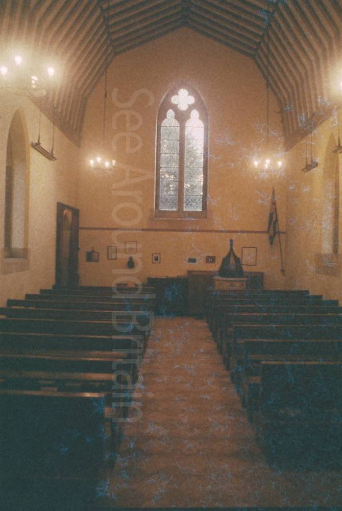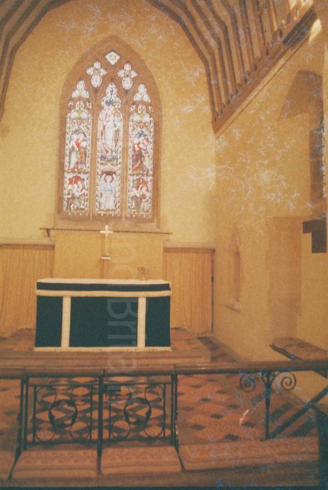 The stained-glass windows date from this period and depict 'The Resurrection.' The windows were donated in memory of William Lorns (died 1873) by his son Richard.