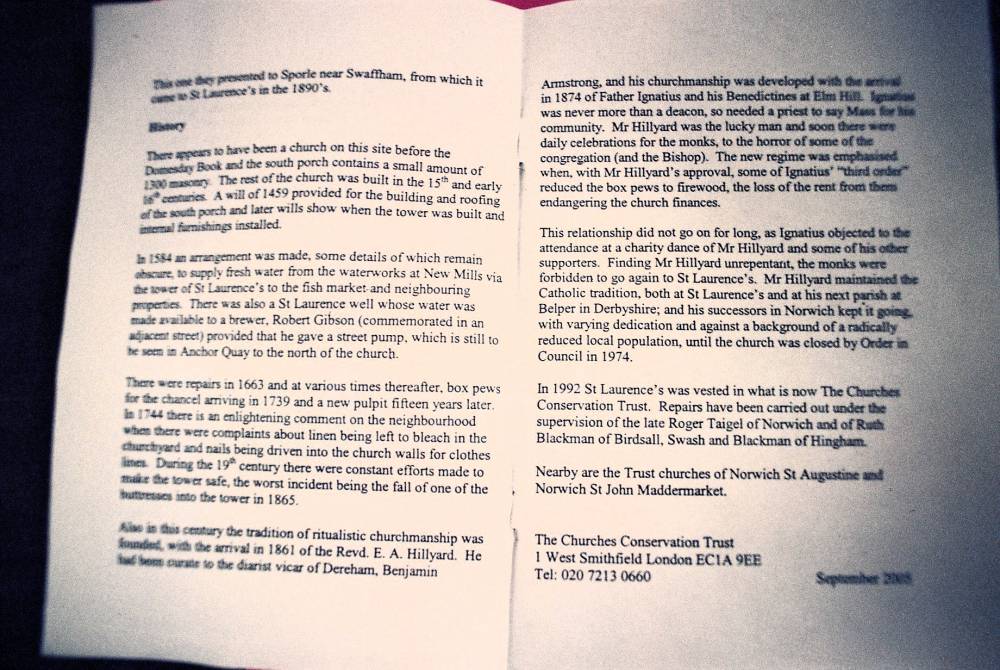 St Laurence's Church, Norwich, Norfolk. Open By Appointment. Free Admission.