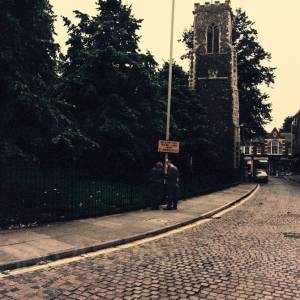Remain on the St Swithin's Road and join Westwick Street, both of which are 1 Way, the Church can be seen on the right hand side.