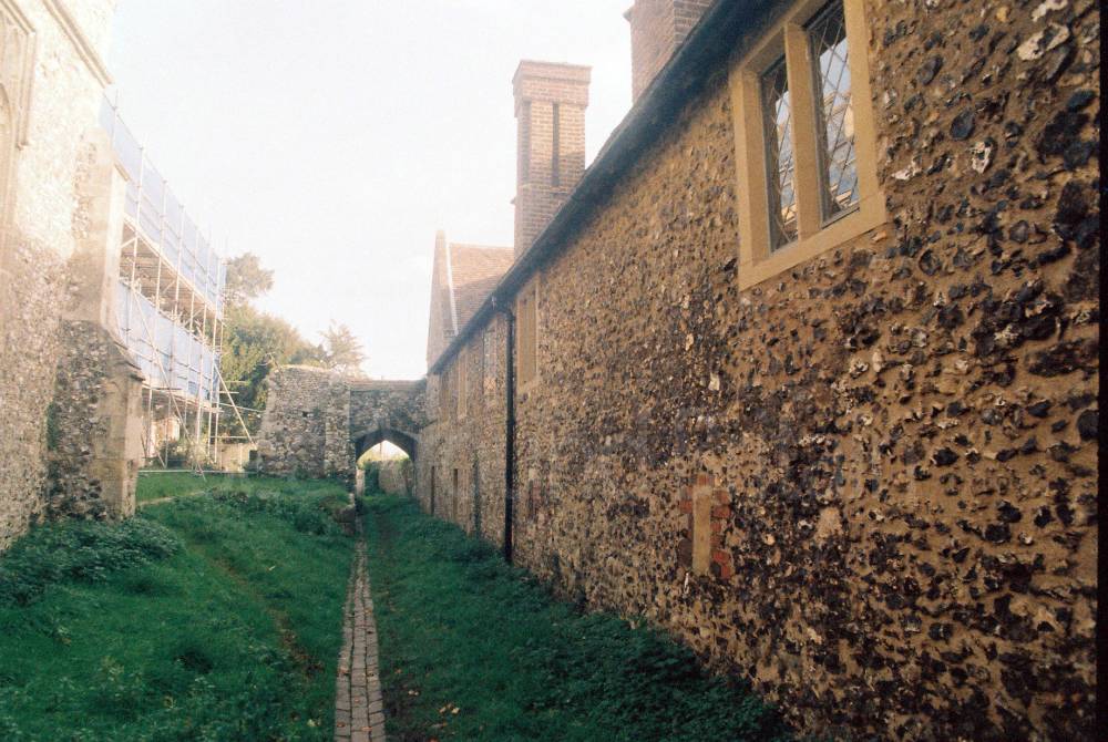 To the immediate south of the church is the building known as Cobham College, now an almshouse, which originally housed the five priests employed by the chantry founded in 1362 by John Cobham, 3rd Baron Cobham."