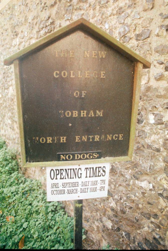 New College of Cobham: "Behind the Parish Church of St Mary, Cobham you will find the quadrangular building of New College and almshouses retaining the remains of the original foundations of the college for priests, built by Sir John de Cobham in 1362.