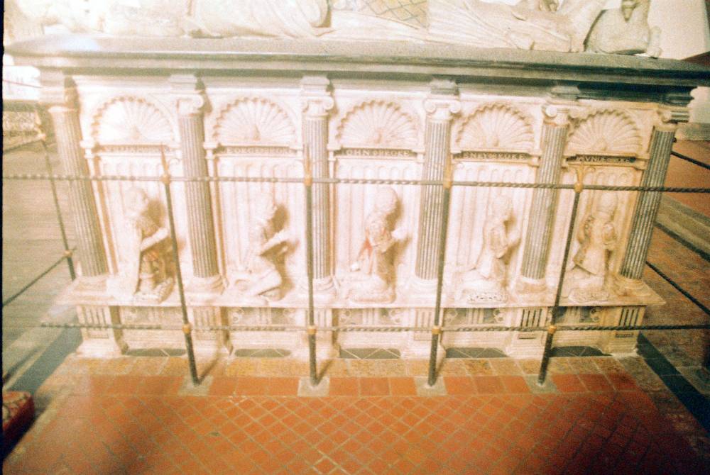 "The parish church is 13th century and is dedicated to St Mary Magdalene. It contains monumental brasses which are reputedly the finest in England. William Belcher in his Kentish Brasses (1905) stated: "No church in the world possesses such a splendid series as the nineteen brasses in Cobham Church, ranging in date between 1298 and 1529." Thirteen of the brasses belong to the years 1320–1529 and commemorate members of the Brooke and Cobham families. In the church also survives the sumptuous chest tomb and alabaster effigies of George Brooke, 9th Baron Cobham (1497–1558) and his heiress wife Ann Bray."