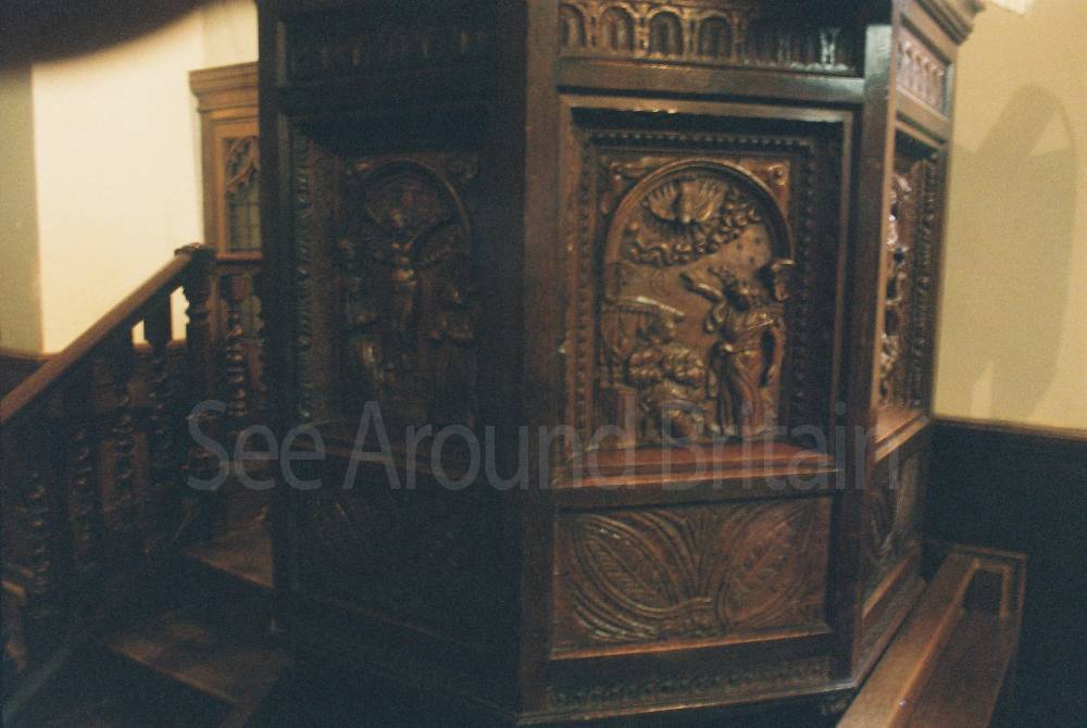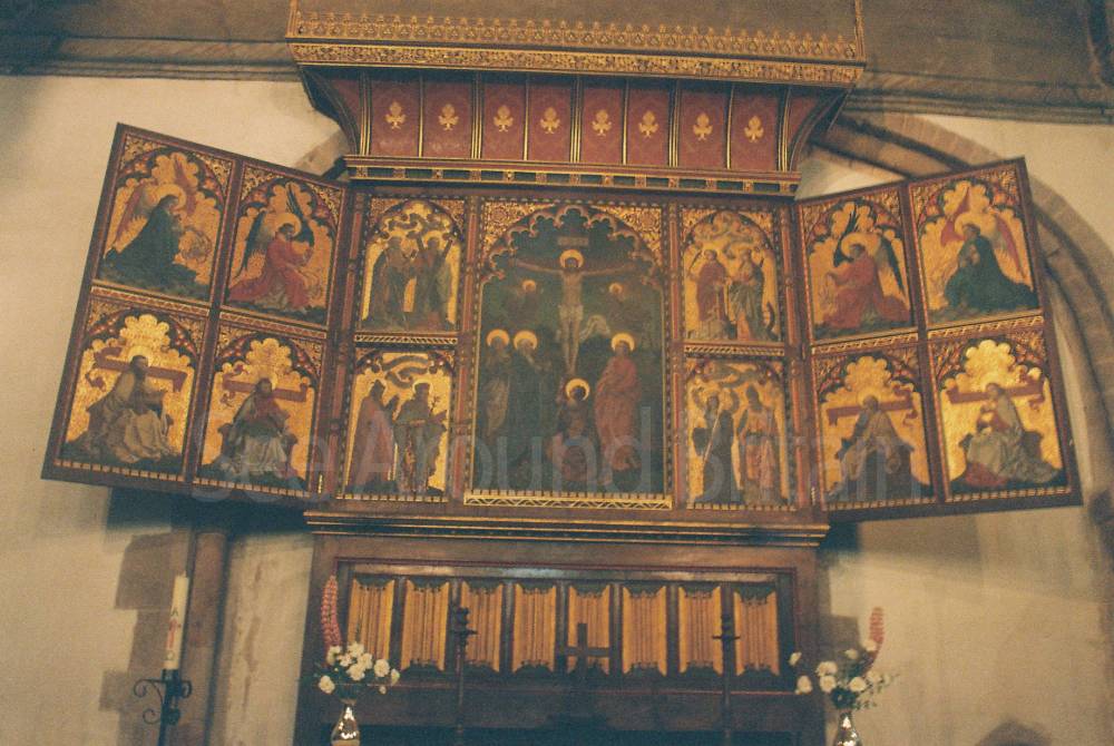 Also of interest is the ornate gilded Victorian triptych above the altar."