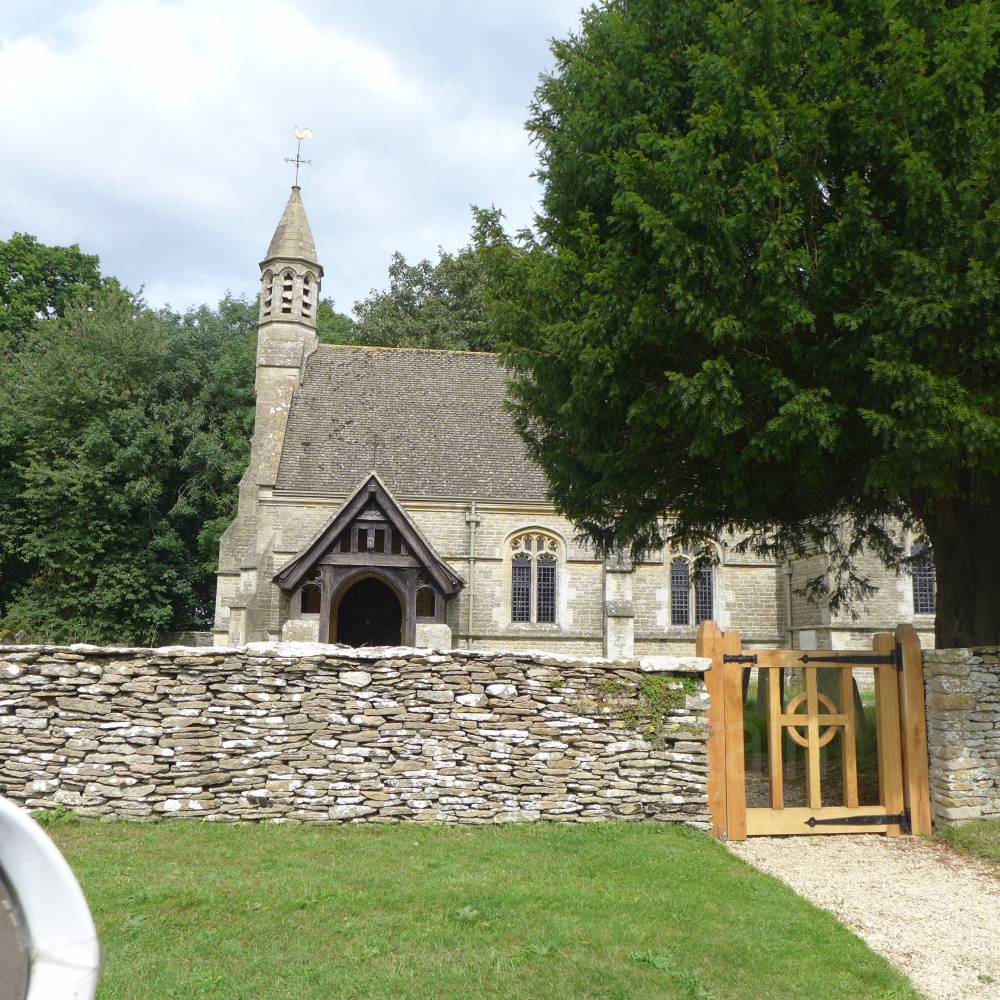 The Kirkland pipe organ was specifically built for this church and is regularly maintained and played for services. The altar with its gilded angels was given by Colonel Heyworth-Savage of Bradwell Grove in memory of his son, who died of his wounds in North Africa in 1941."