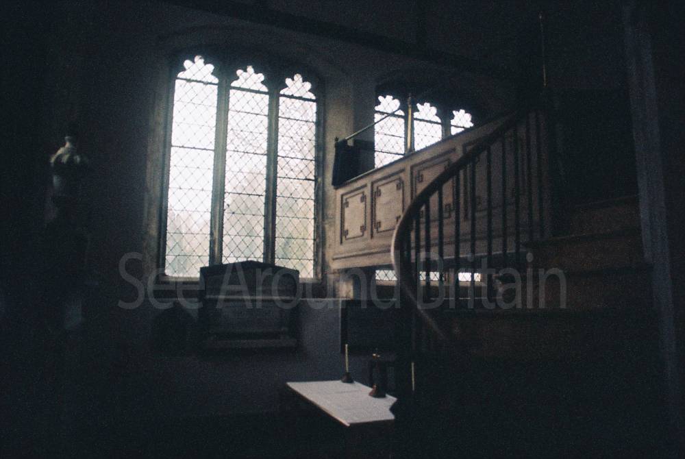 An oddity of the church is the Squire's pew, a room upstairs furnished with a table and Chippendale chairs, built for the Gibbons family from Hole Park for separately looking down on the main congregation."