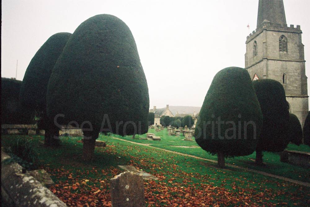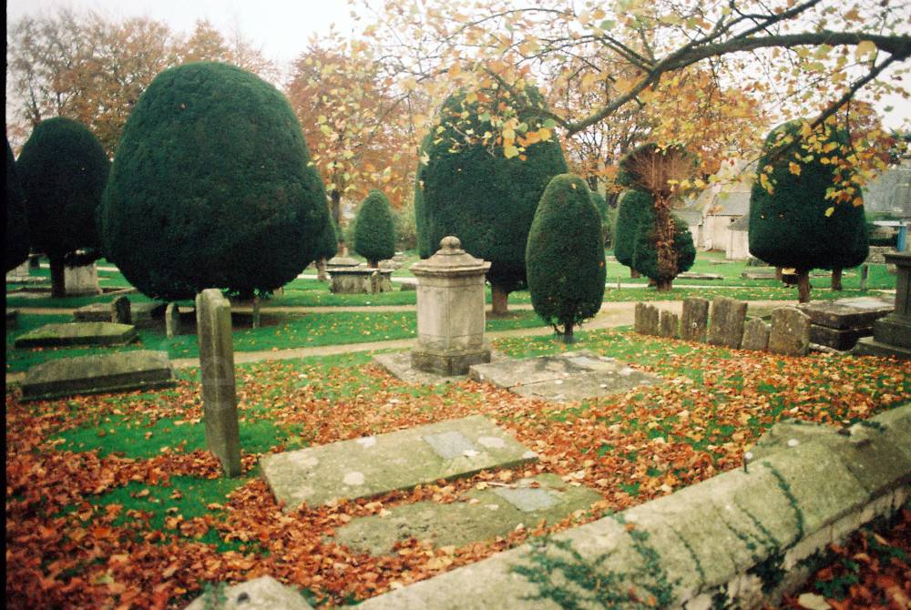 In the churchyard Painswick has a fine collection of chest tombs and monuments from the early 17th century onwards, carved in local stone by local craftsmen. The oldest tomb, with fossils on the top, is of William Loveday, yeoman, dated 1623. Alec Clifton-Taylor, an English architectural historian, describes the churchyard, with its tombs and yews, as "the grandest churchyard in England"."