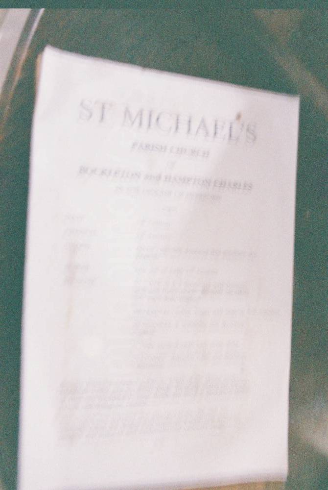 In 1953 the Vestry Screen was presented by Mrs E. Cantrell of Birmingham as a thank offering for ten peaceful years lived in Bockleton.