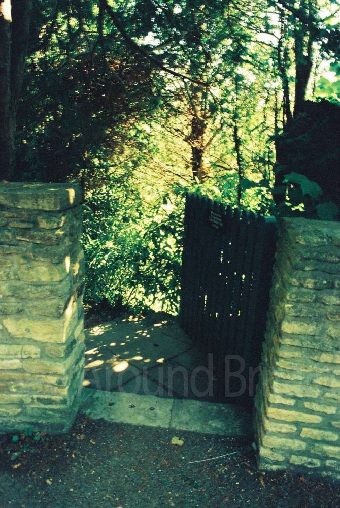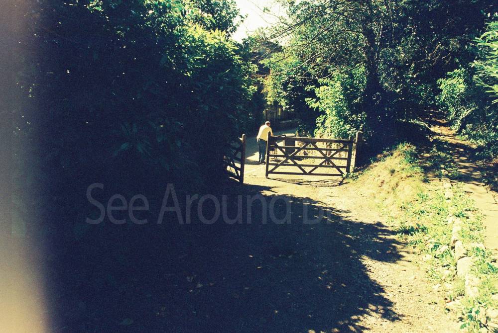 Just after passing a metal gate with access to the National Trust property, the entrance for the church path is on the right hand side on the bend in the lane to the left.