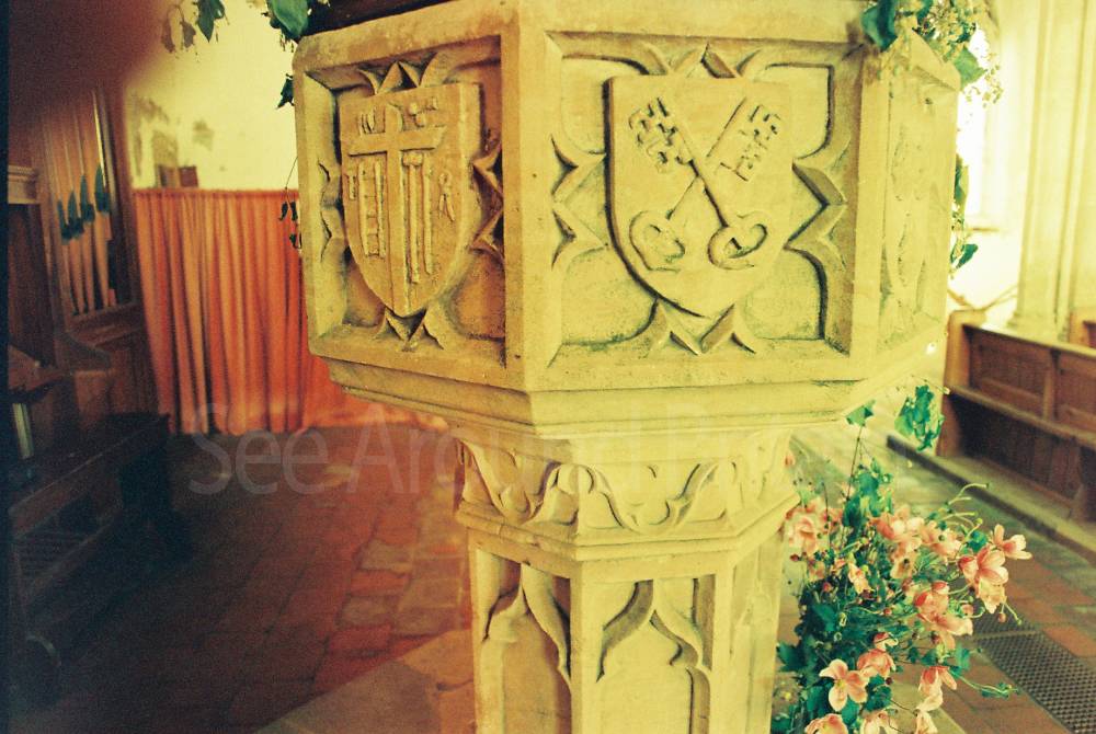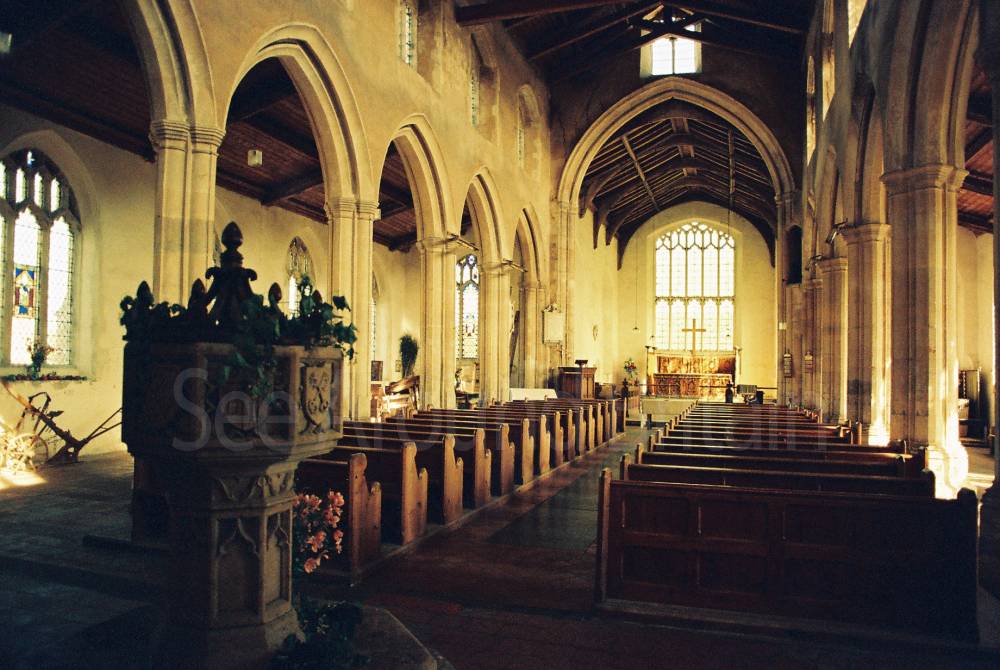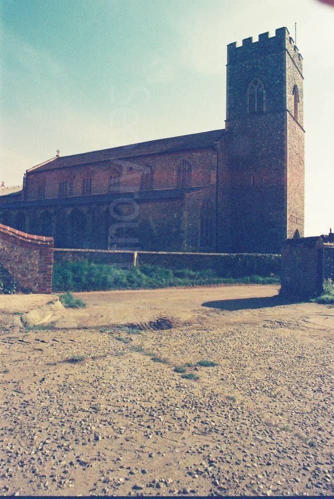 "The church was virtually all built in the late 14th century. Despite the destruction of the chancel leaving a somewhat truncated east end it remains a very attractive building. Of particular importance are both the arch braced roof and a complete set of 15th century benches, the latter of which are a rarity in Norfolk."