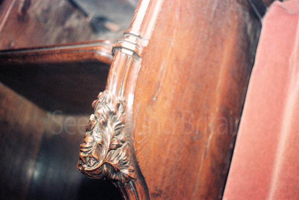 They are supported by beautiful carved capitals, each overflowing with foliage, scrollwork, birds and beasts -- look for the man being swallowed by (or emerging from) a monster. These carvings were plastered over in the seventeenth century and were carefully unpicked with a bone knife in the early nineteenth century by local antiquarian Anne Elizabeth Baker, a labour of love lasting 11 years. Other highlights include a handsome brass lectern and carved wooden pews and monuments - including the bust of William Smith, the father of British geology.