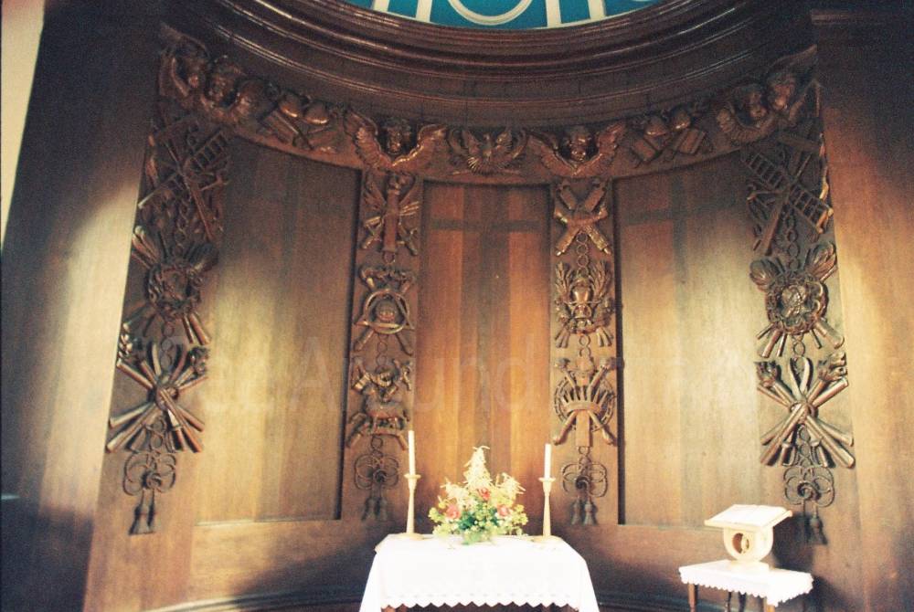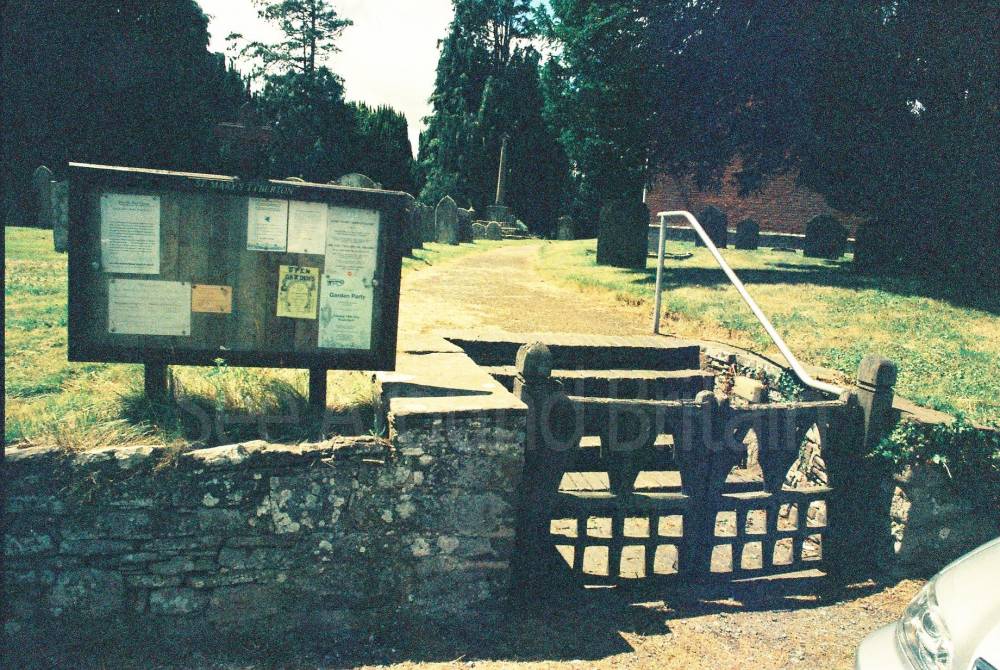 Approximately 6 steps with handrail from roadside through the gates onto church ground. Flat pathway from steps to church. Parking along roadside.