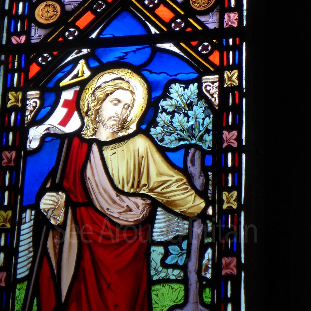 - Window depicting St Michael in the slype, which connects the aisle to the chancel (this romantic rendering of the saint, dated to about 1900, is believed to have also been the work of Heaton Butler and Bayne)