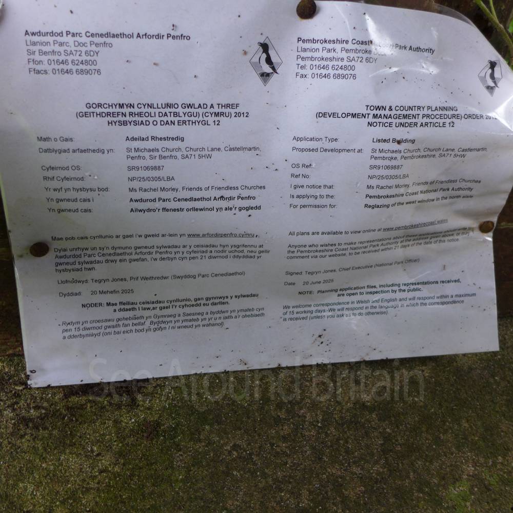 2025; "Open daily" https://friendsoffriendlesschurches.org.uk/church/st-michael-and-all-angels-castlemartin-pembrokeshire/