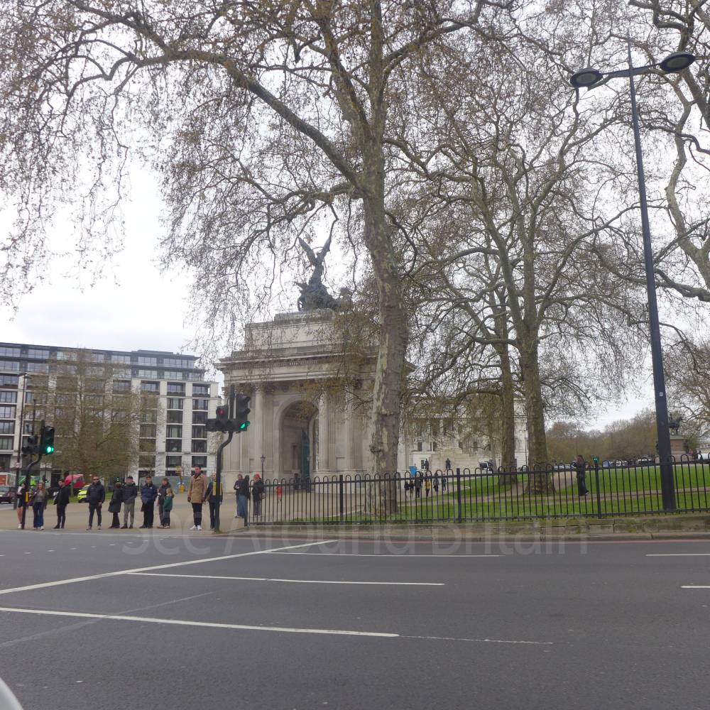 The Arch is located in a park in the middle of the roundabout of the junctions of Constitution Hill, Duke of Wellington Place, Grosvenor Street, Piccadilly and the A4.